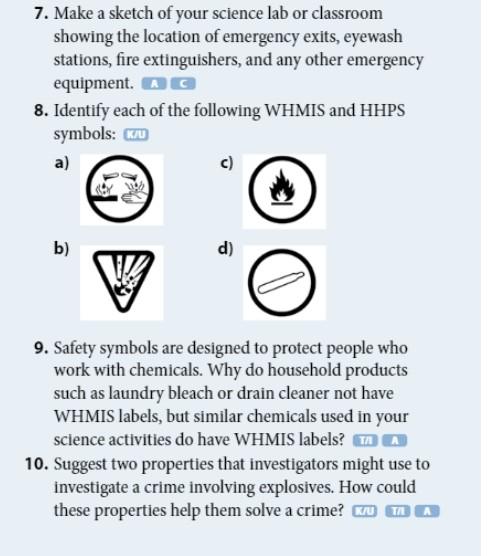 PDF WHMIS and Safety Worksheet - Answer key 4. Do all products and chemicals have WHMIS labels? Explain. No, some products, like pesticides and many household products, are covered by other legislation, and will have other label (e.g. international hazards symbols) 5. Identify the following symbols, write down at least one hazard this symbol represents and