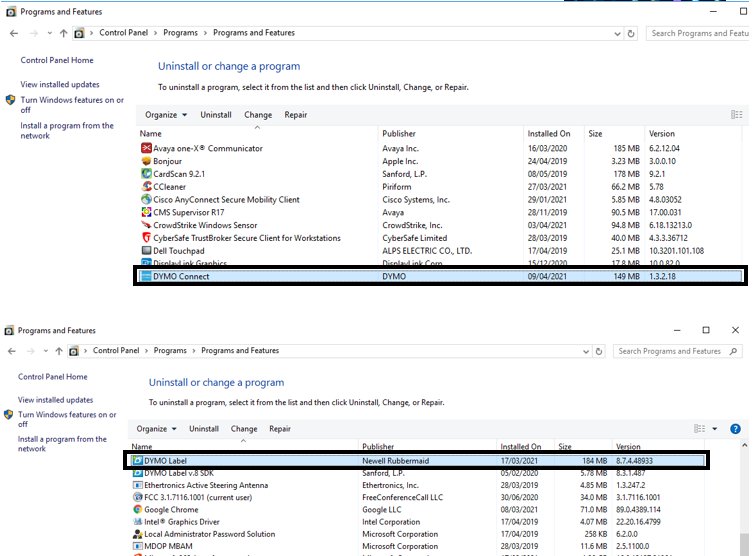 Dymo recently printed labels not showing